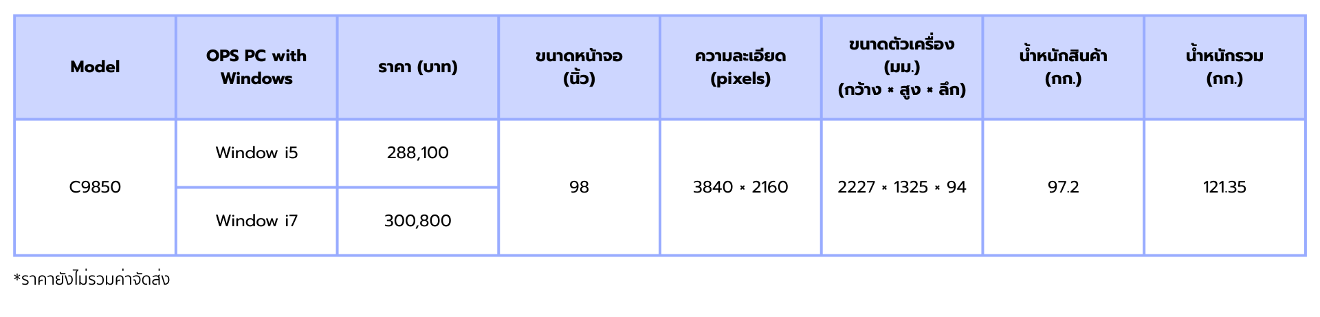 - จอ 4K ขนาด 98 นิ้ว ภาพคมชัด มองเห็นชัดทั่วห้อง