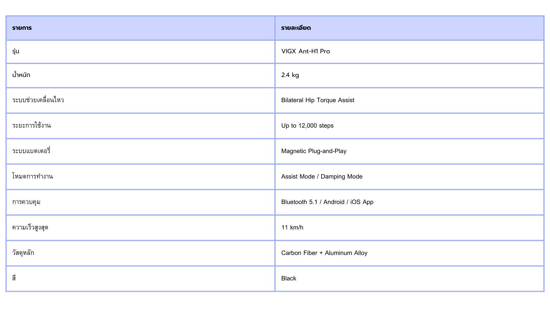 VIGX Ant-H1 Pro คืออุปกรณ์ AI-Powered Wearable Exoskeleton Walking Assist Robot ที่ช่วยเสริมแรงการเดินให้เป็นธรรมชาติ โดยระบบจะตรวจจับการเคลื่อนไหวของขาส่วนล่างและส่งแรงช่วยที่สะโพกผ่าน bilateral actuators ทำให้เดินหรือขึ้นที่สูงได้ง่ายขึ้น ลดความเหนื่อยล้า และเพิ่มระยะเวลาในการเดิน